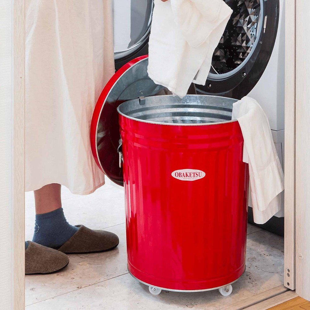 點我下載日本 OBAKETSU 手工製附輪垃圾桶 33L(贈垃圾袋環)紅色