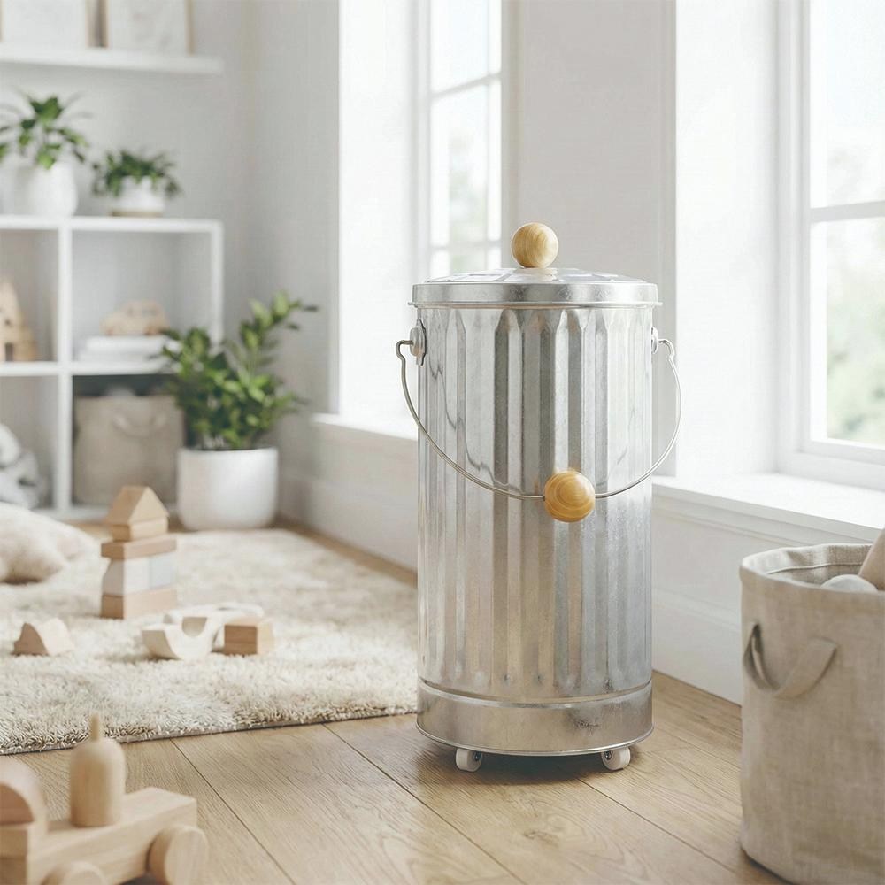 日本 OBAKETSU 不鏽鋼防臭多功能收納桶(附輪)12L銀色