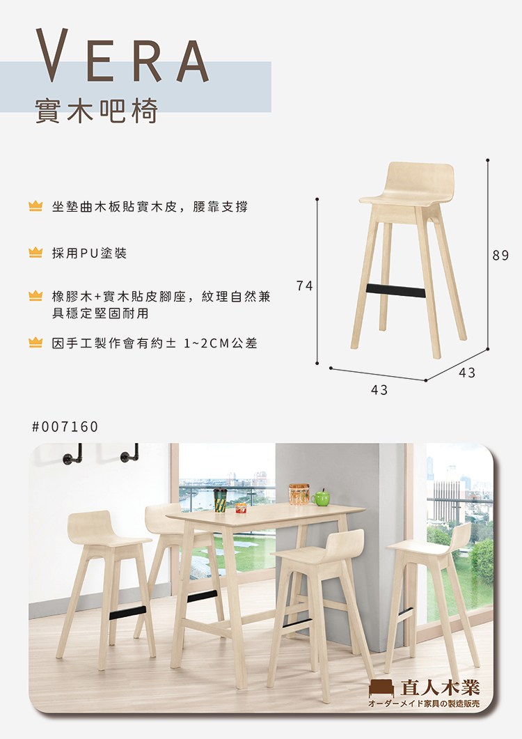 MUNA家居 維拉吧椅(板)(實木) 43X43X89cm
