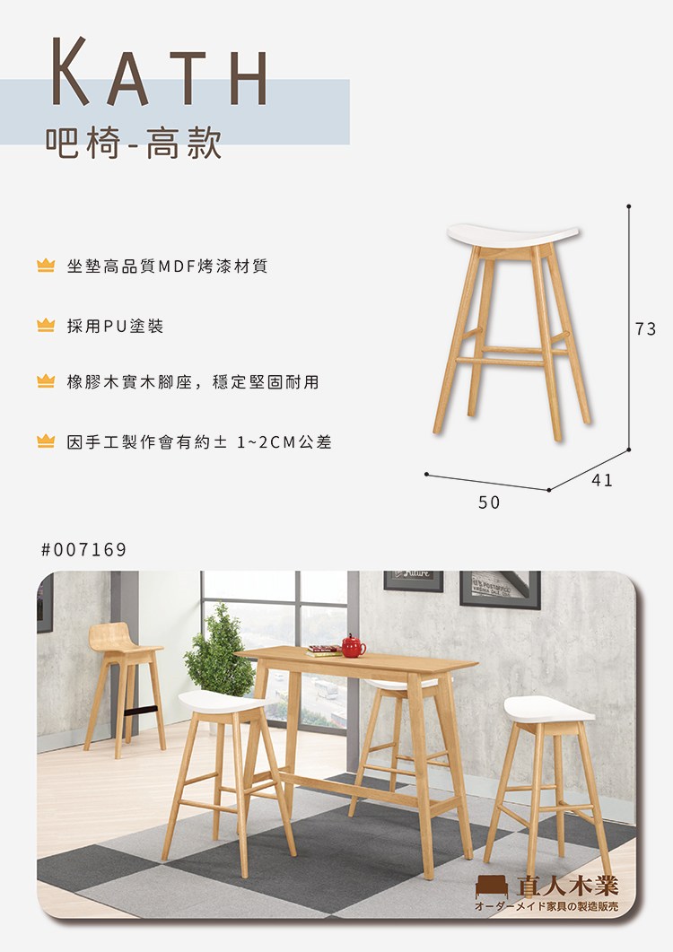 直人木業-TORBAY實木吧椅-洗白色-中款
