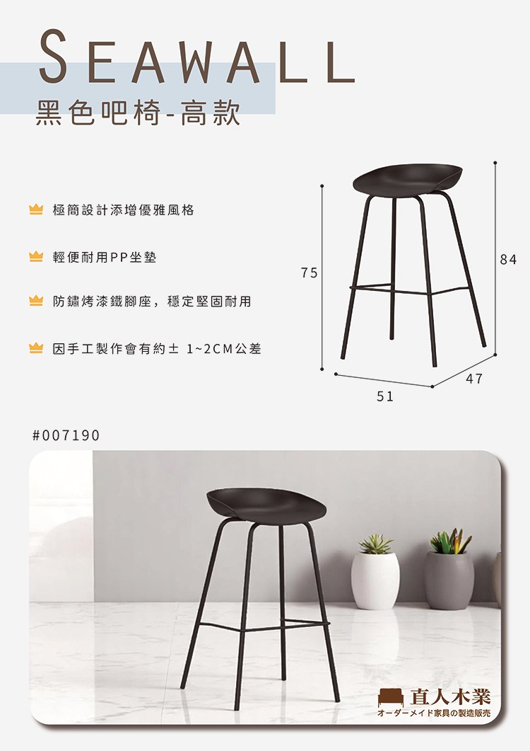 MUNA家居 伊絲吧椅(高)(黑)(實木) 48X42X81cm