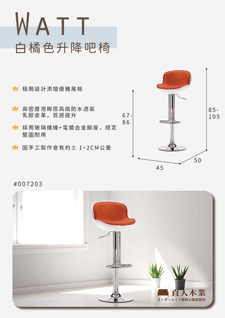 直人木業-WATT白橘升降吧椅