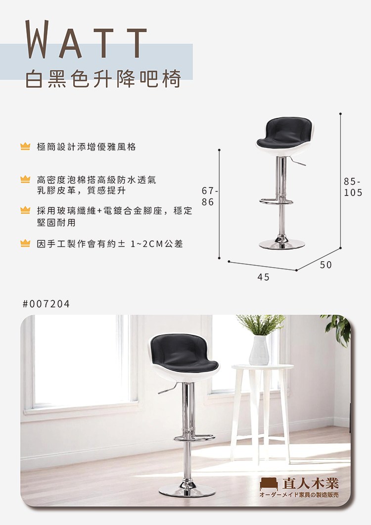 瓦特吧椅(白黑)