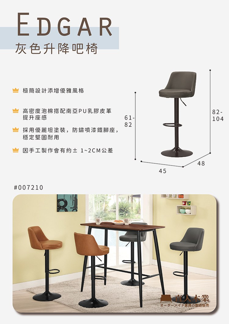 直人木業-ASHE灰棕升降吧椅