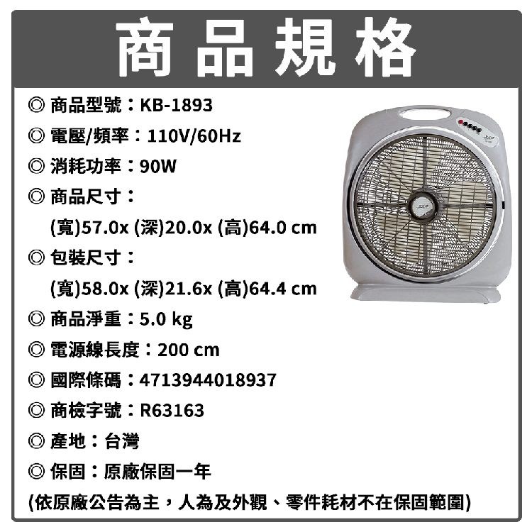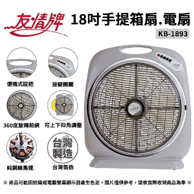 友情牌 18吋手提箱扇.電風扇 KB-1893 ~台灣製造