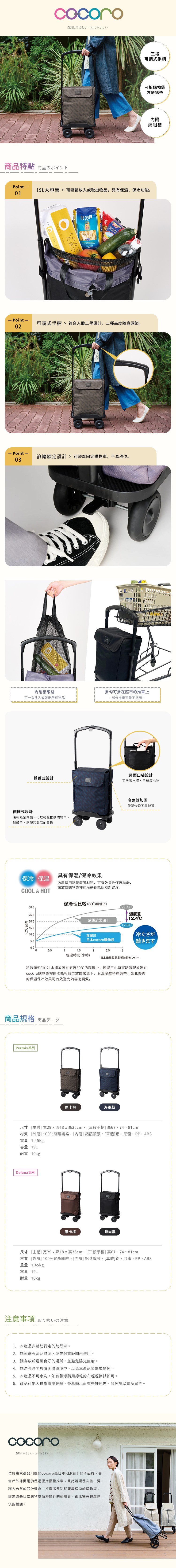 日本cocoro Delana 側推型保溫保冷四輪摺疊購物車-19L-多色可選