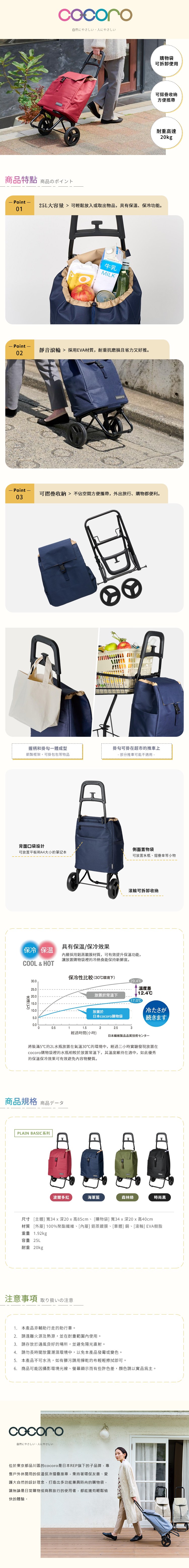 日本cocoro PLAIN COLOR 保溫保冷摺疊購物車-40L-多色可選