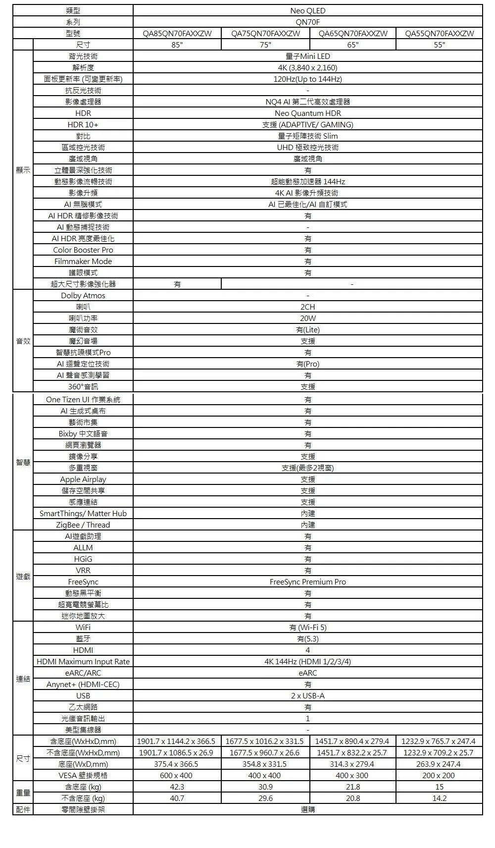 三星 SAMSUNG 75型 4K Neo QLED 120Hz Mini LED AI智慧顯示器 75QN70F QA75QN70FAXXZW