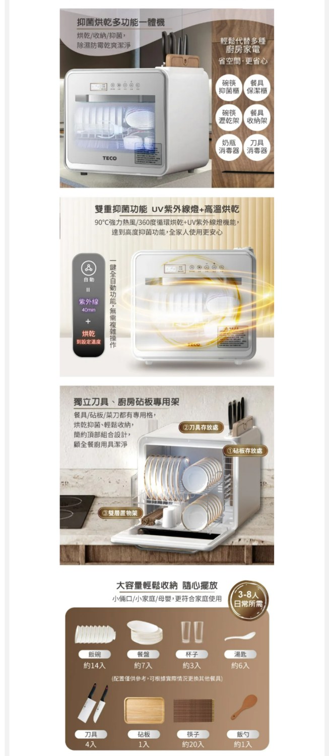 【TECO東元】智能UV抑菌熱旋烘碗機/餐具烘乾機(XYFYE040W)