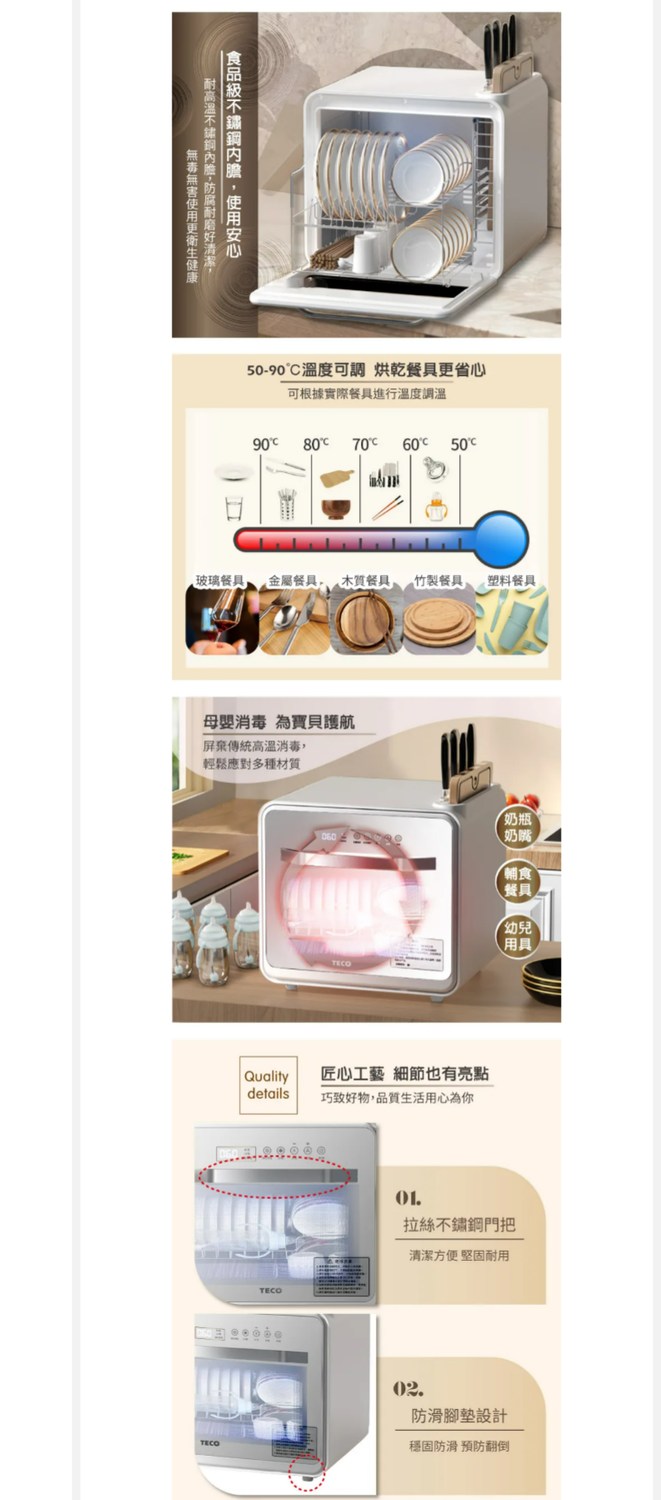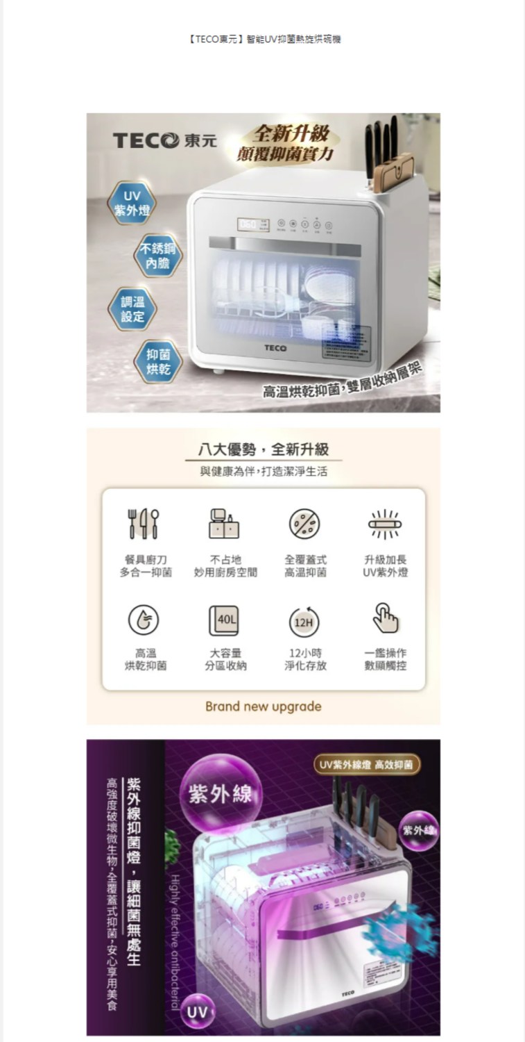 TECO 東元智能UV抑菌熱旋烘碗機/餐具烘乾機 XYFYE040W