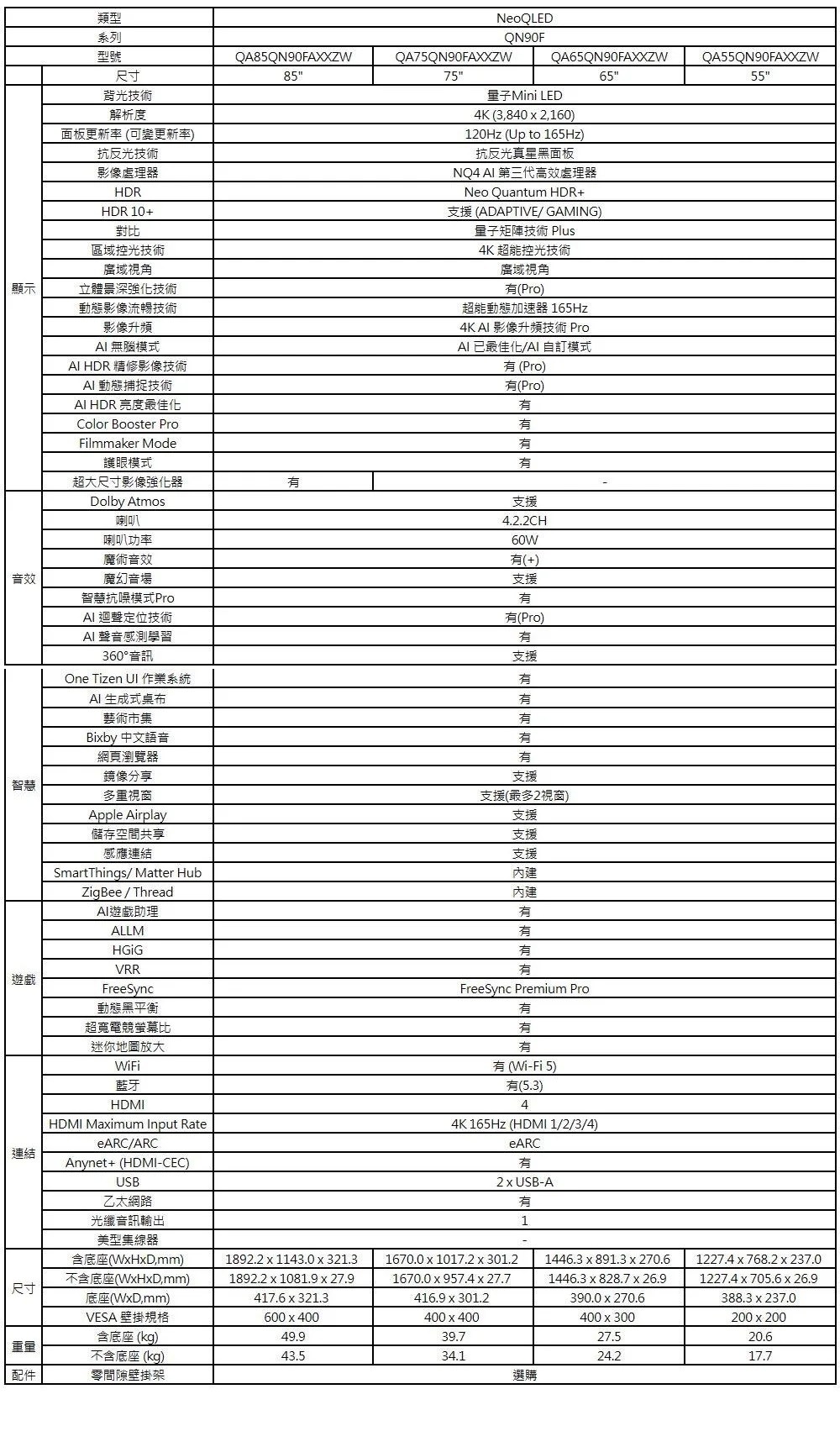 55型 Neo QLED Mini LED QN80F 4K Samsung Vision AI 智慧顯示器 (2025)