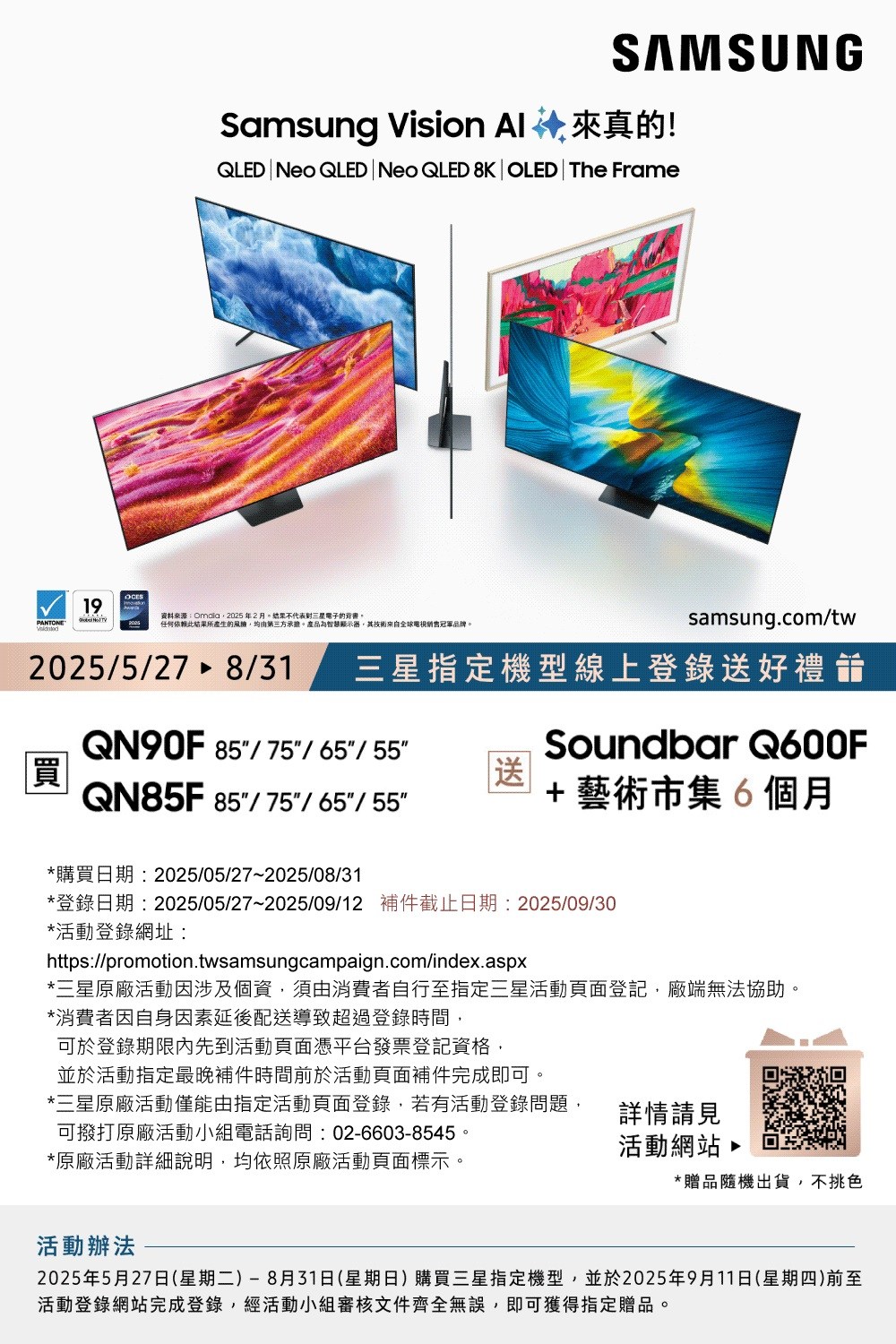 送陶板屋餐券5張★(含標準安裝)三星65吋4K Neo QLED連網智慧顯示器QA65QN90FAXXZW分享送500