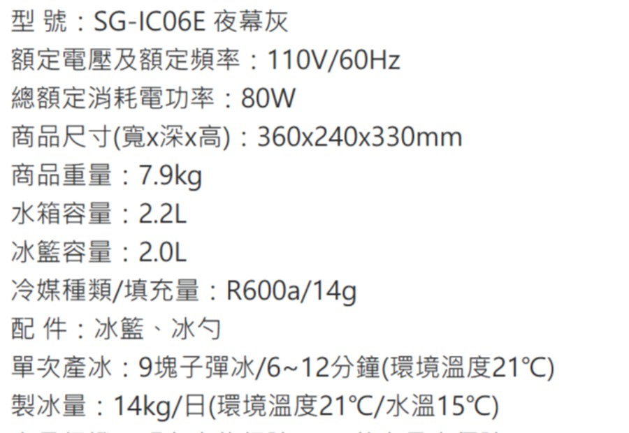 SONGEN 松井 SG-IC06E 夜幕灰 自動製冰機 衛生冰塊