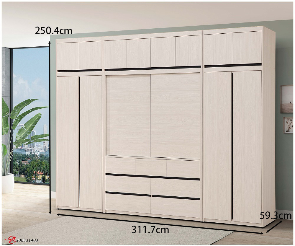 尺寸規格 寬 311.7 公分 X 深 59.3 公分 X 高 250.4 公分。