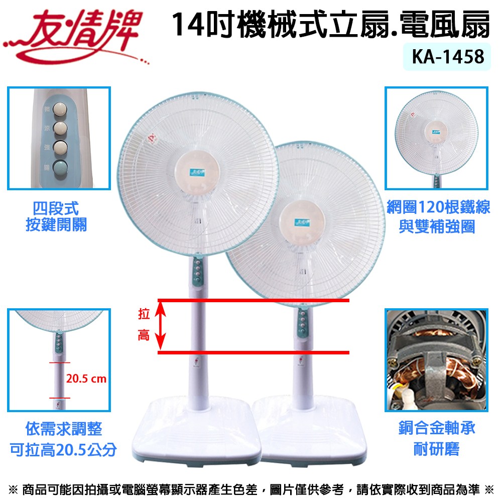 【2入】友情牌 14吋機械式立扇.電扇.電風扇 KA-1458 ~台灣製造