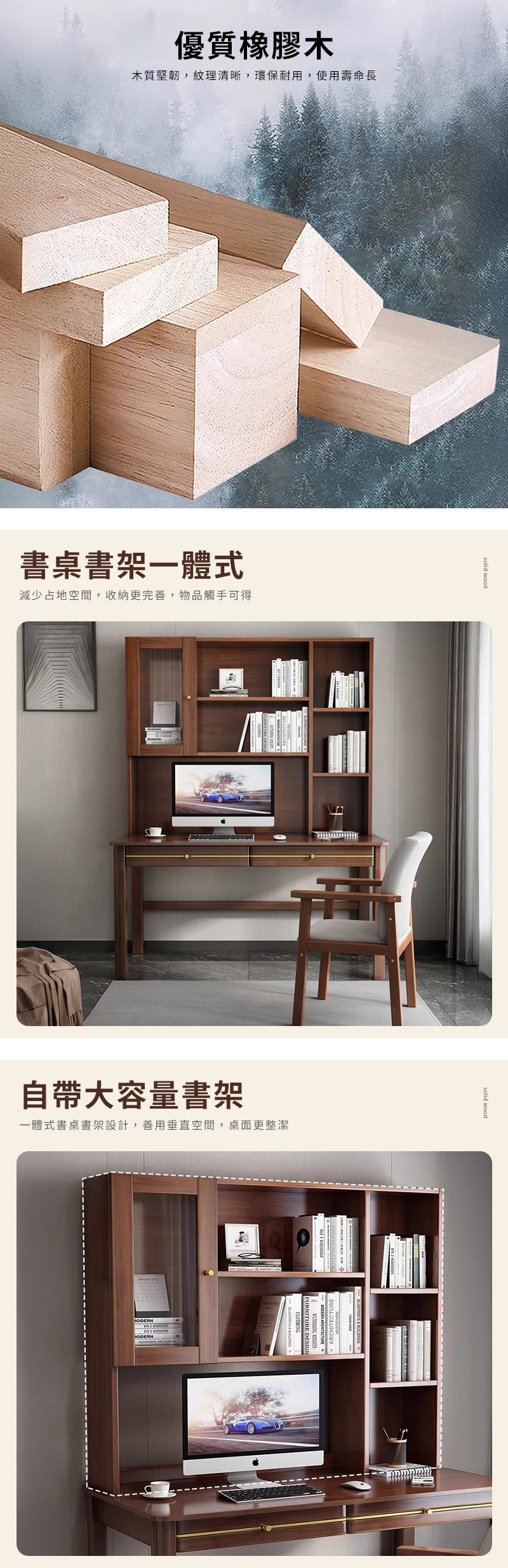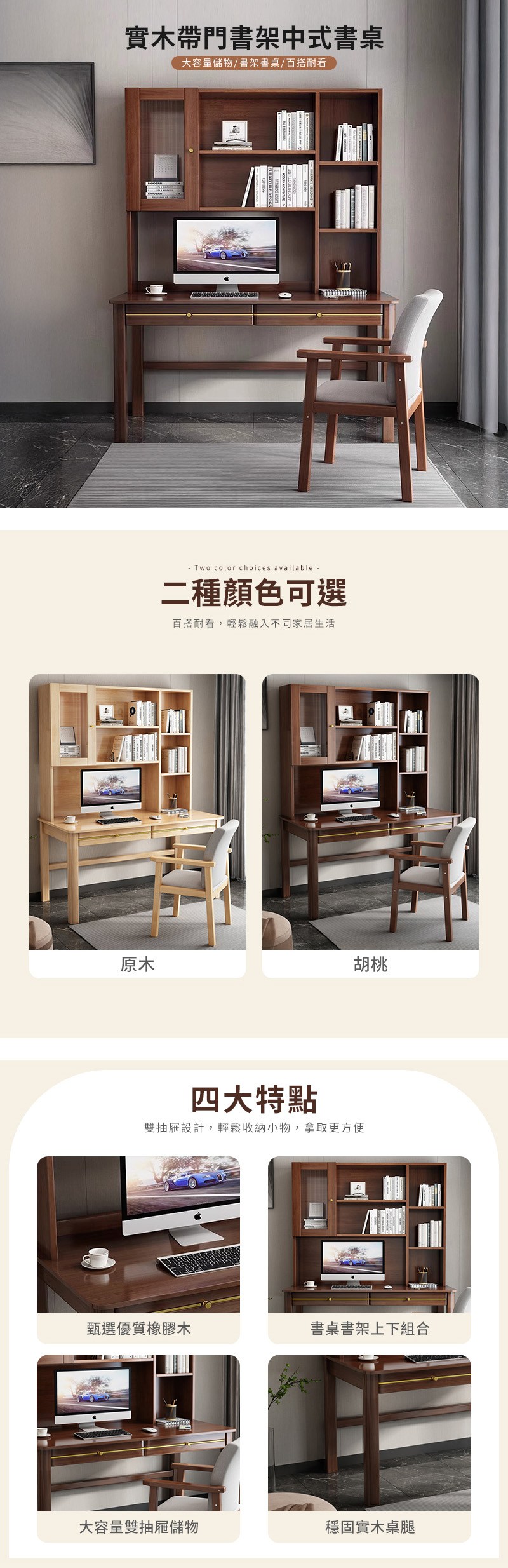 【HappyLife】實木帶門書架中式書桌 120公分 Y12084胡桃