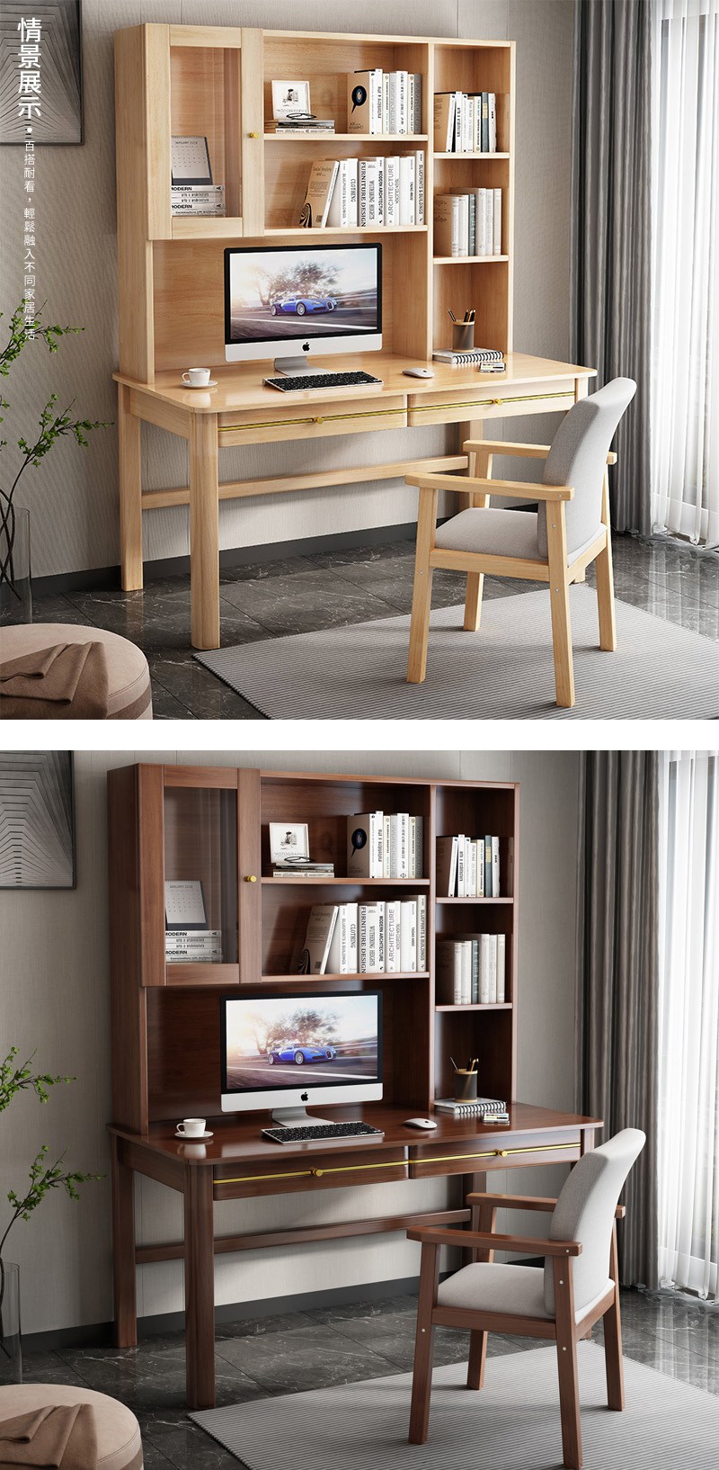 【HappyLife】實木帶門書架中式書桌 100公分 Y12083原木