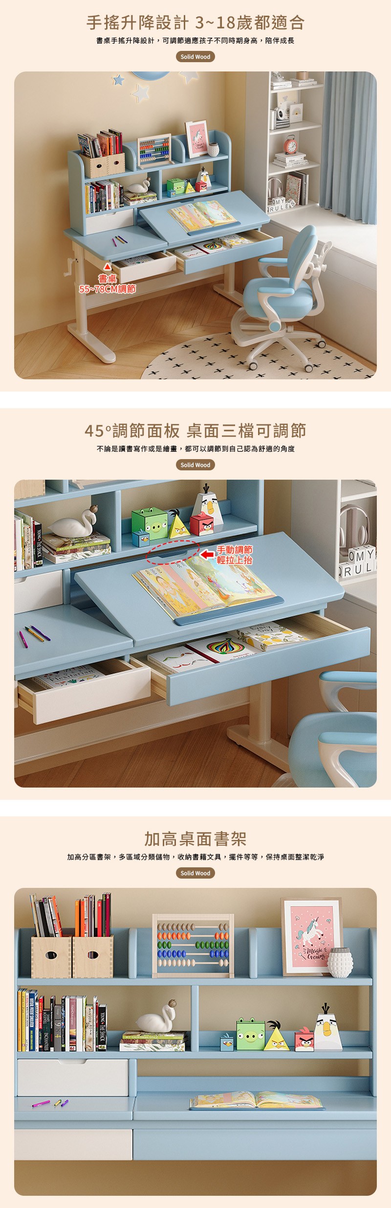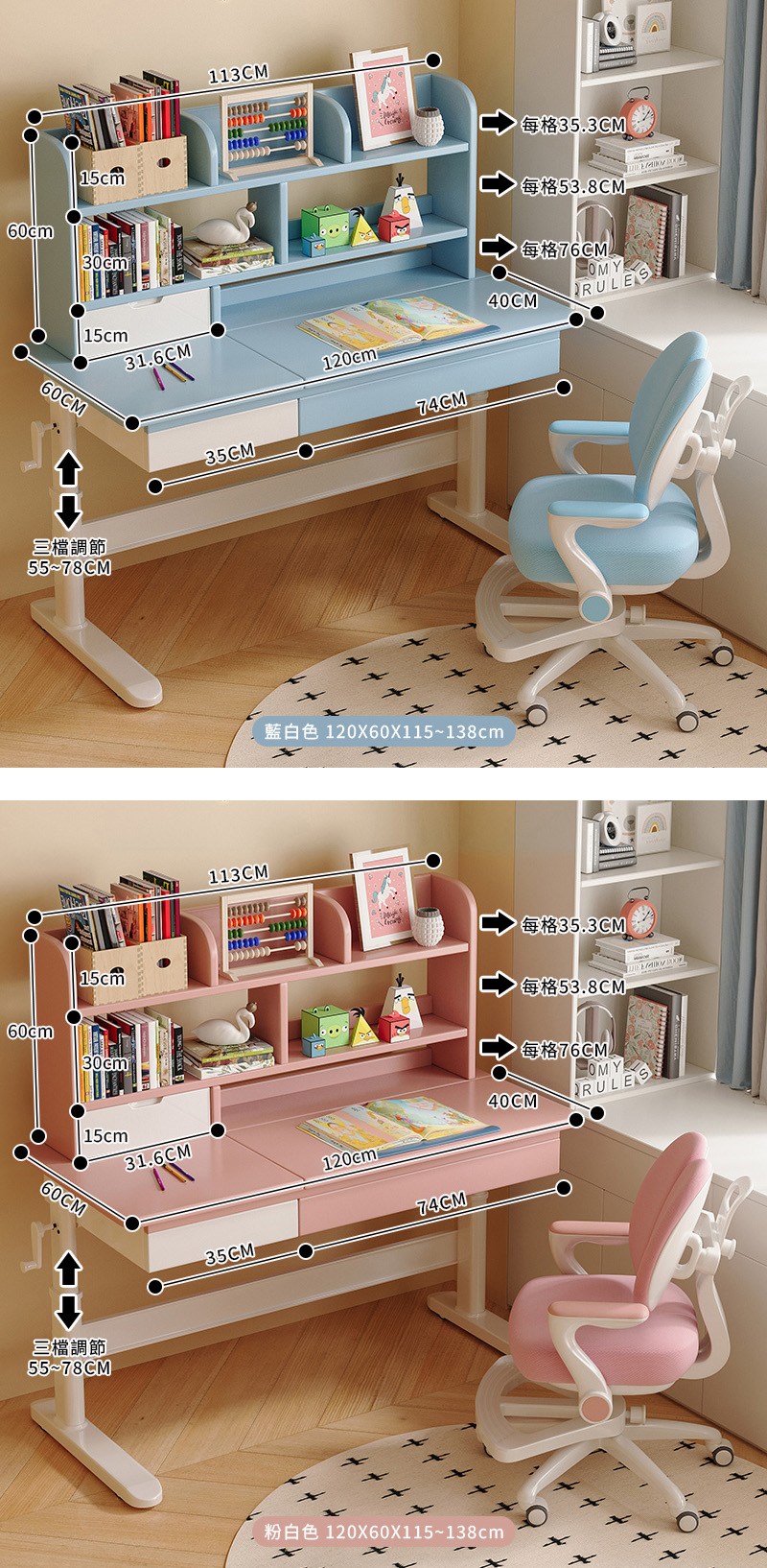 【HappyLife】實木升降書架書桌 120公分 Y12147藍白
