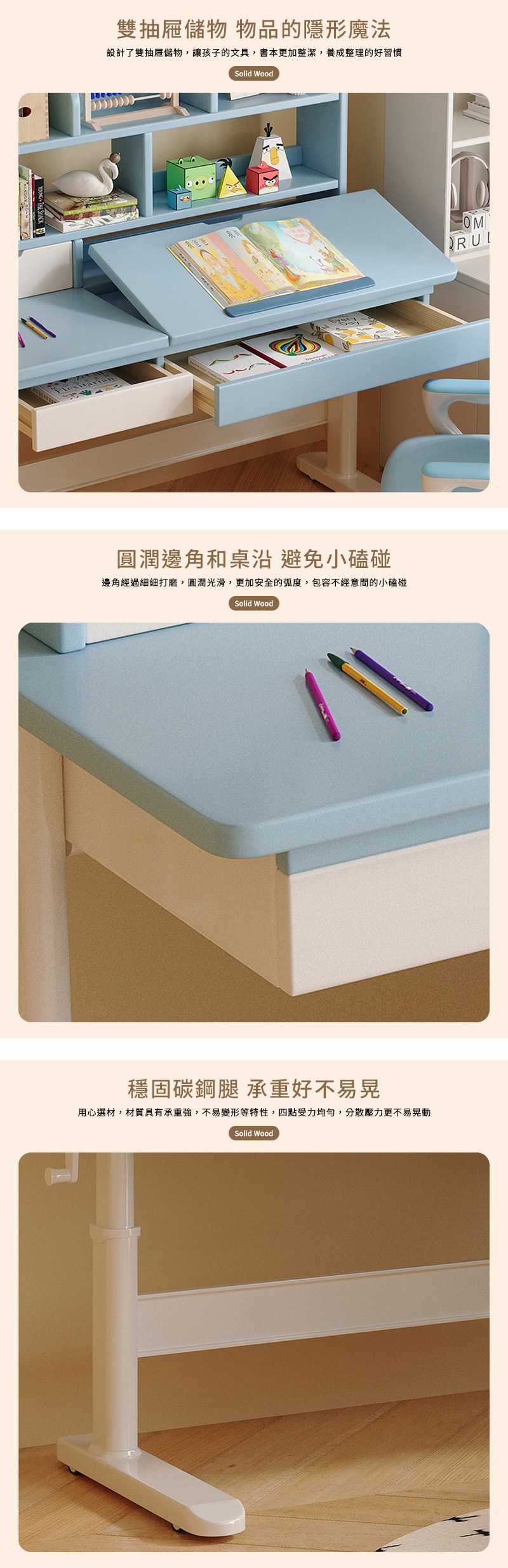E-home GUGU古古多功能書架雙抽陪讀兒童升降成長桌-寬120cm-三色可選藍色
