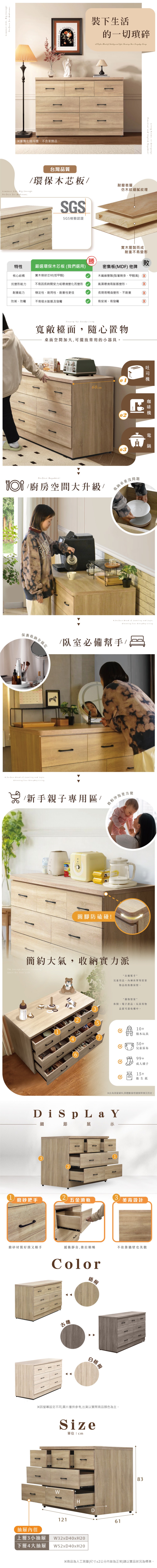 IHouse-台灣製免組裝 木心板7抽收納櫃(斗櫃/餐桌櫃/工作桌/育嬰桌/中島桌/置物櫃)古橡