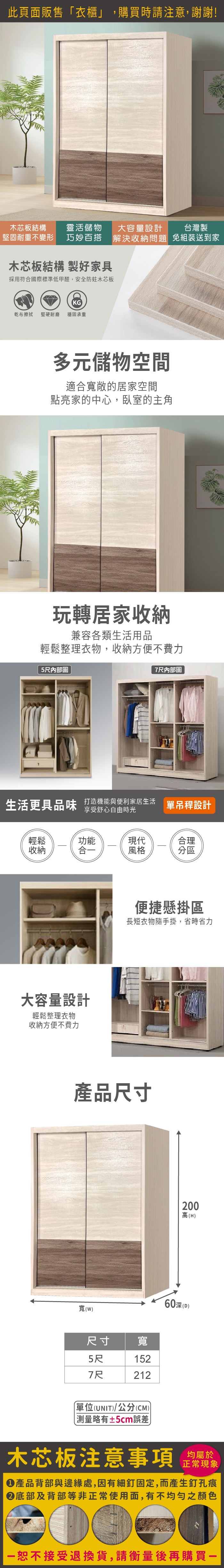 Homelike 喜家居5x7尺推門衣櫃(多色可選)(2311)雪松