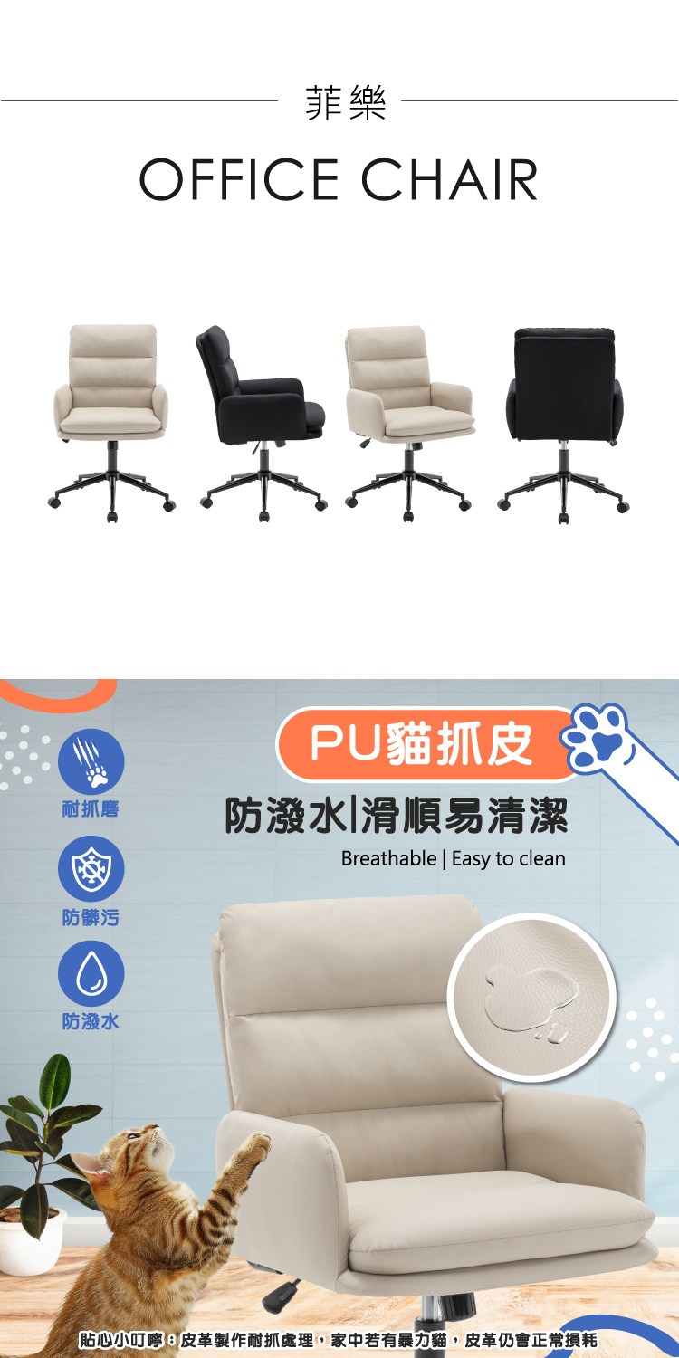 * 防潑水PU貓抓皮設計滑順易清潔