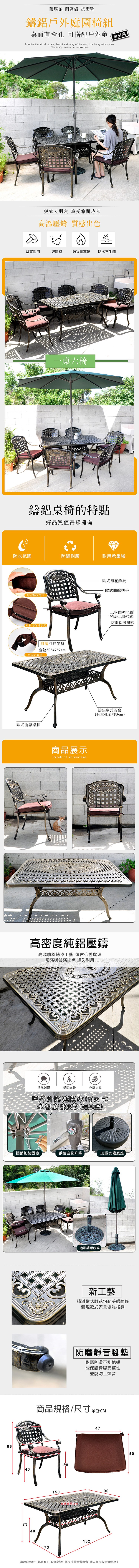╭☆雪之屋小舖☆╯一桌六椅A48A57/A18A09春雨鋁合金長方桌椅/造型餐桌/休閒桌/咖啡桌/置物桌/戶外桌/長方桌