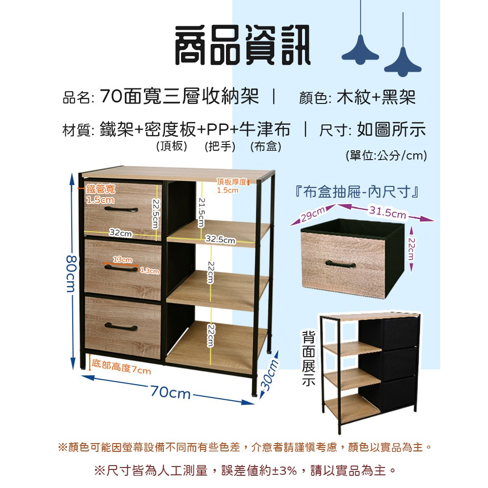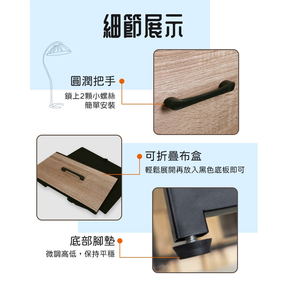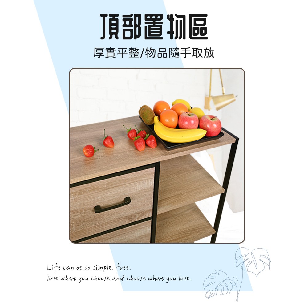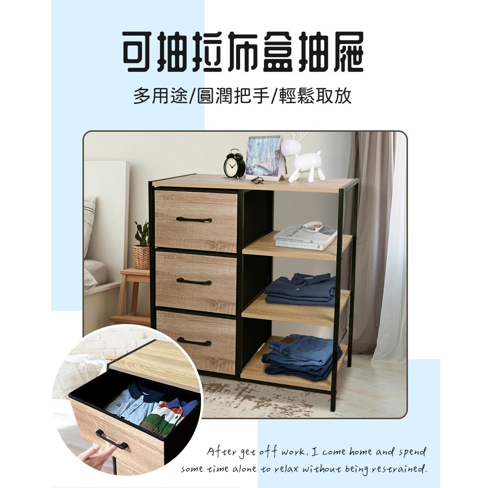 【Amos】布藝木紋二抽層架收納櫃桃木紋