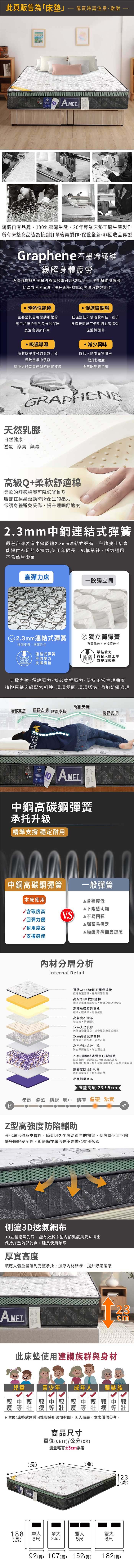 ASSARI-石墨烯雙彈簧高支撐三線獨立筒床墊-單人3尺單人3尺