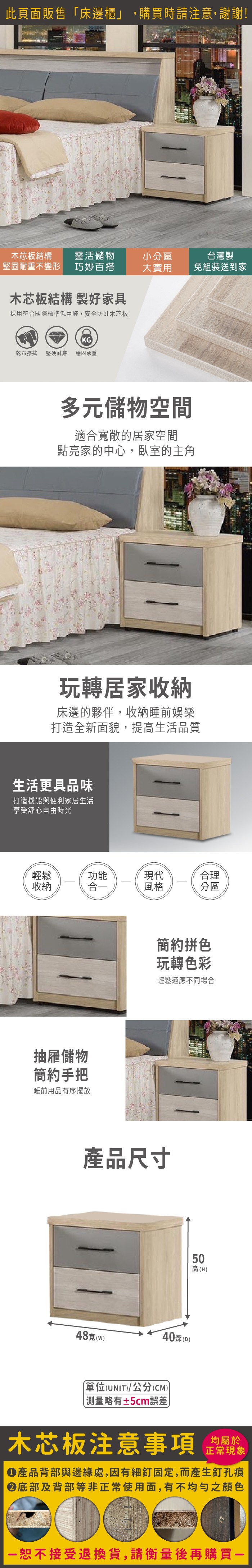 Boden-蒙恩1.6尺床頭櫃/二抽收納櫃-48x41x49cm