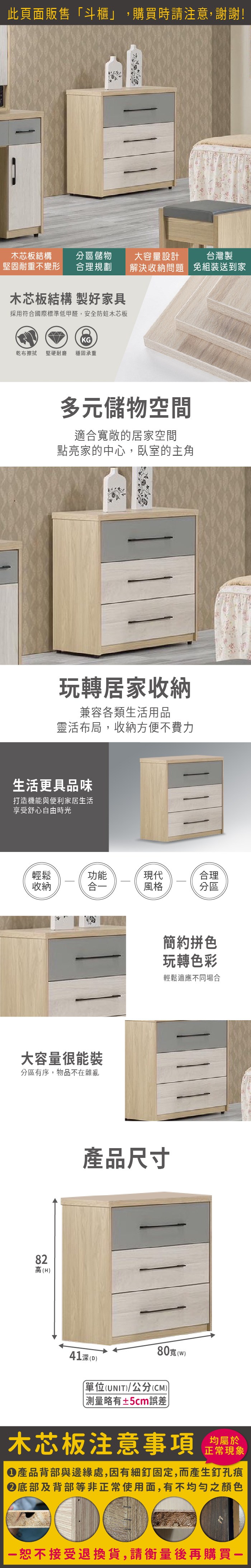 時尚屋 格納2.6尺三斗櫃 寬80x深50x高85.4公分
