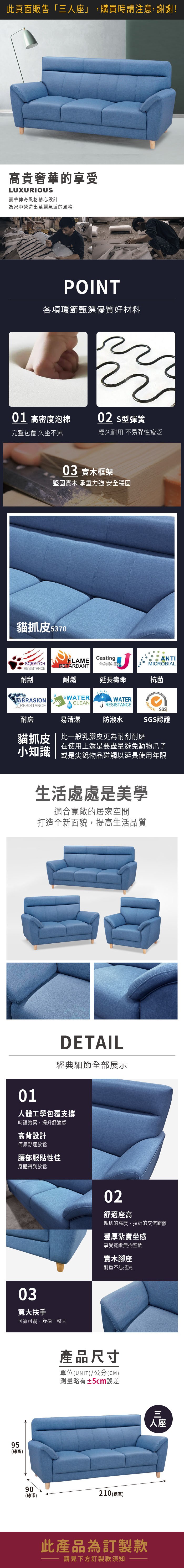 【UHO】新古典貓抓皮三人沙發02米