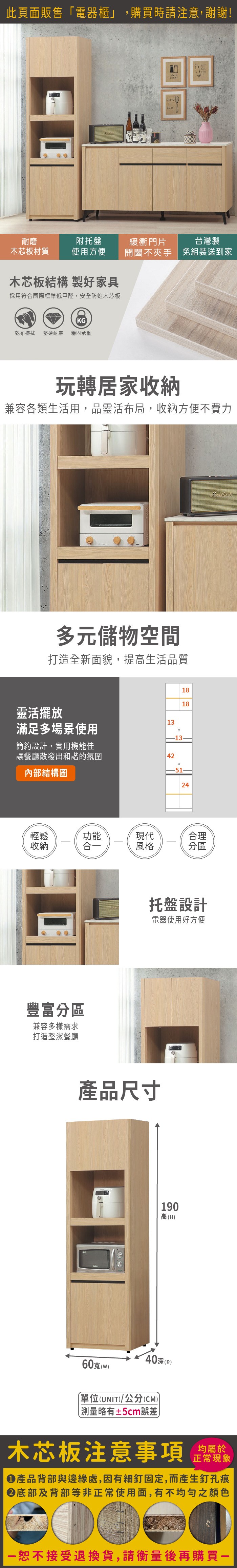 文創集 愛楓木2尺開門拉盤高電器櫃/餐櫃-60x45x200-cm免組