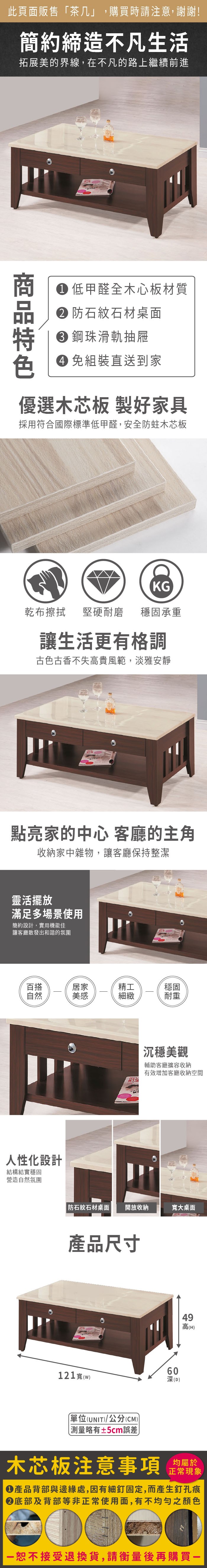 MUNA家居 D099型4.3尺岩板大茶几/抽屜緩衝 130X72X40cm