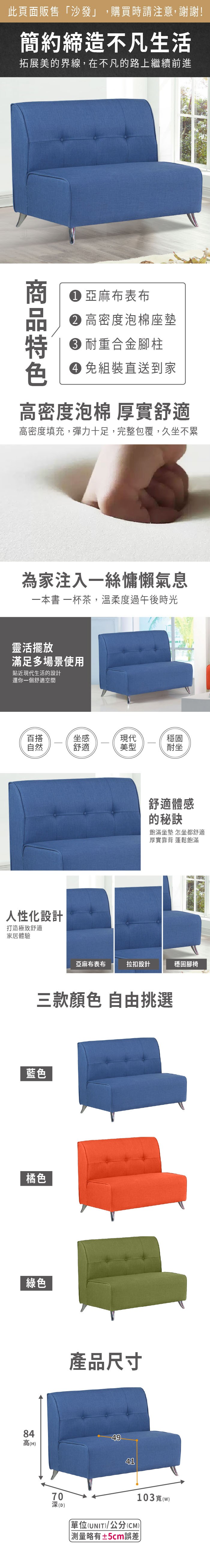 ASSARI-庫柏加寬單人座亞麻布沙發藍色