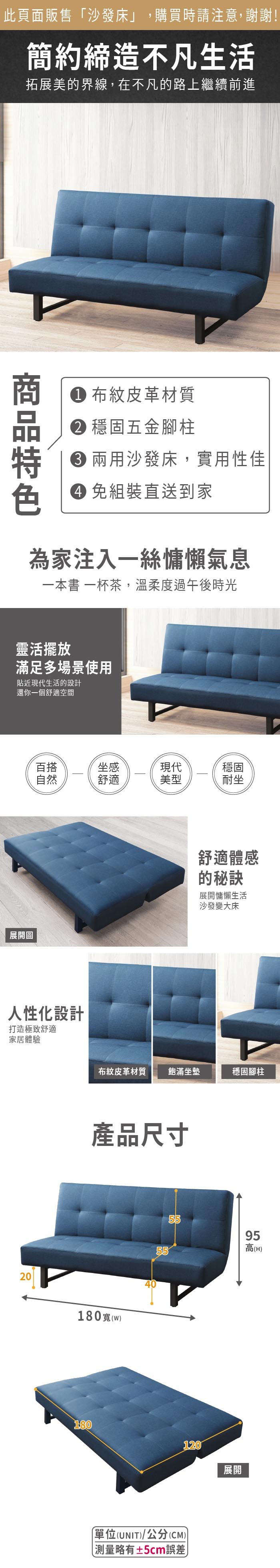 ASSARI-格蘭姆布紋皮沙發床(寬180x深120x高95cm)