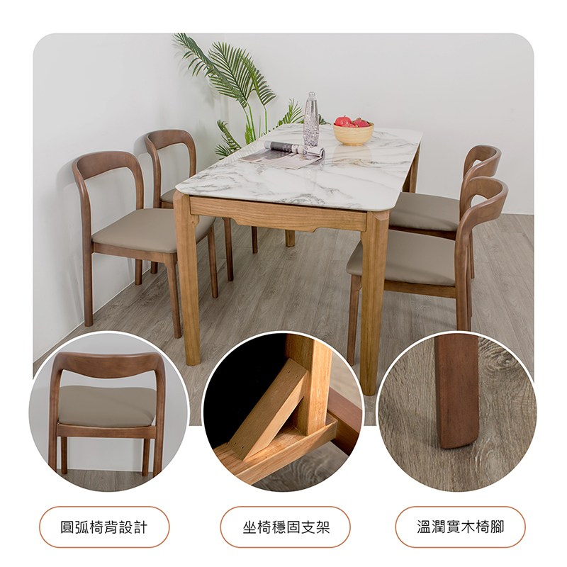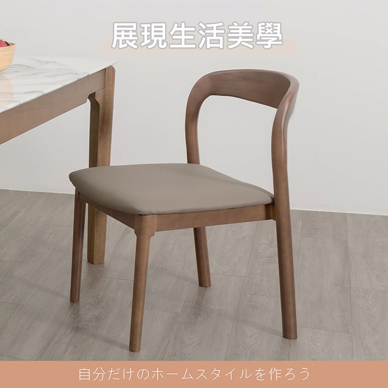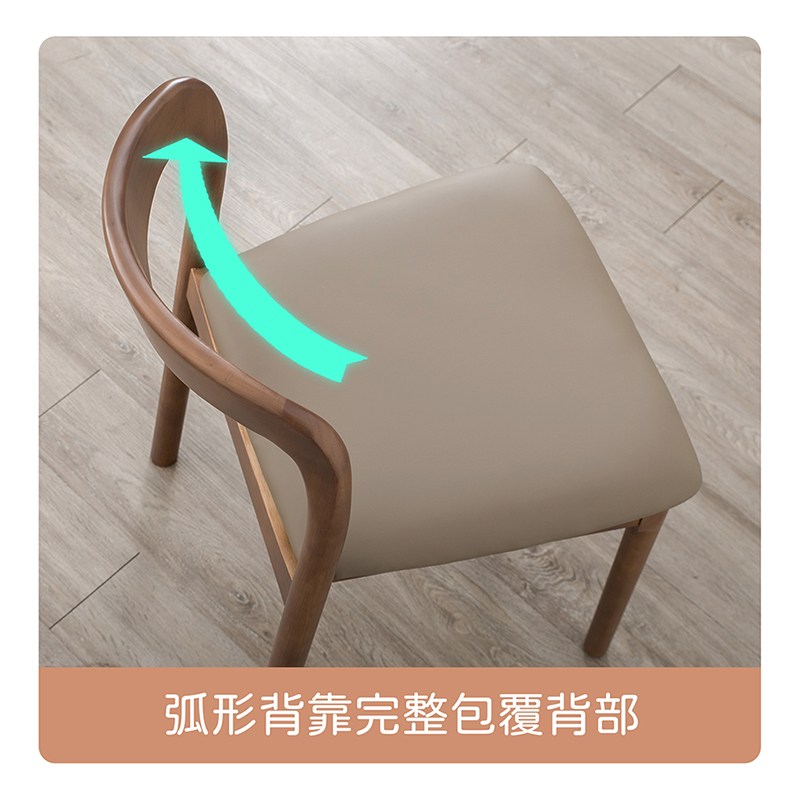 北歐復古 橡木實木 胡桃色皮餐椅
