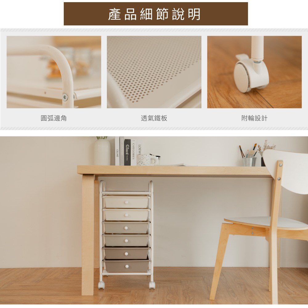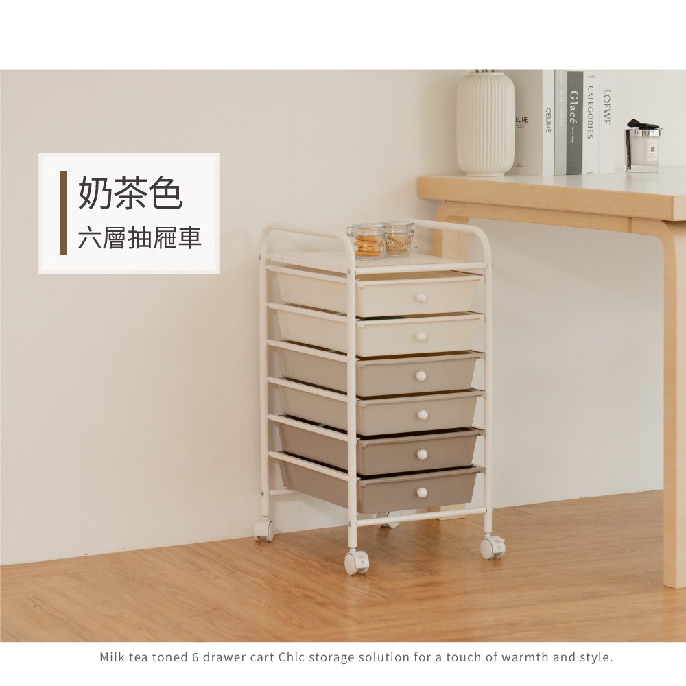 IKLOO_奶茶色六層抽屜收納箱 收納車 資料收納 辦公室必收