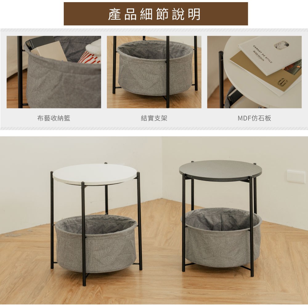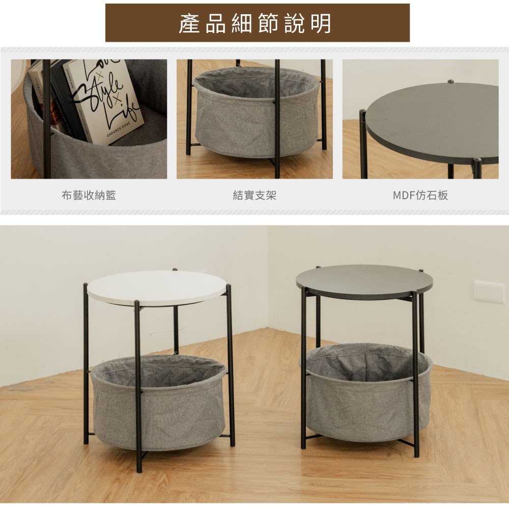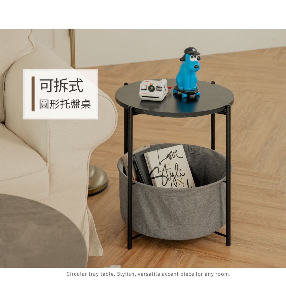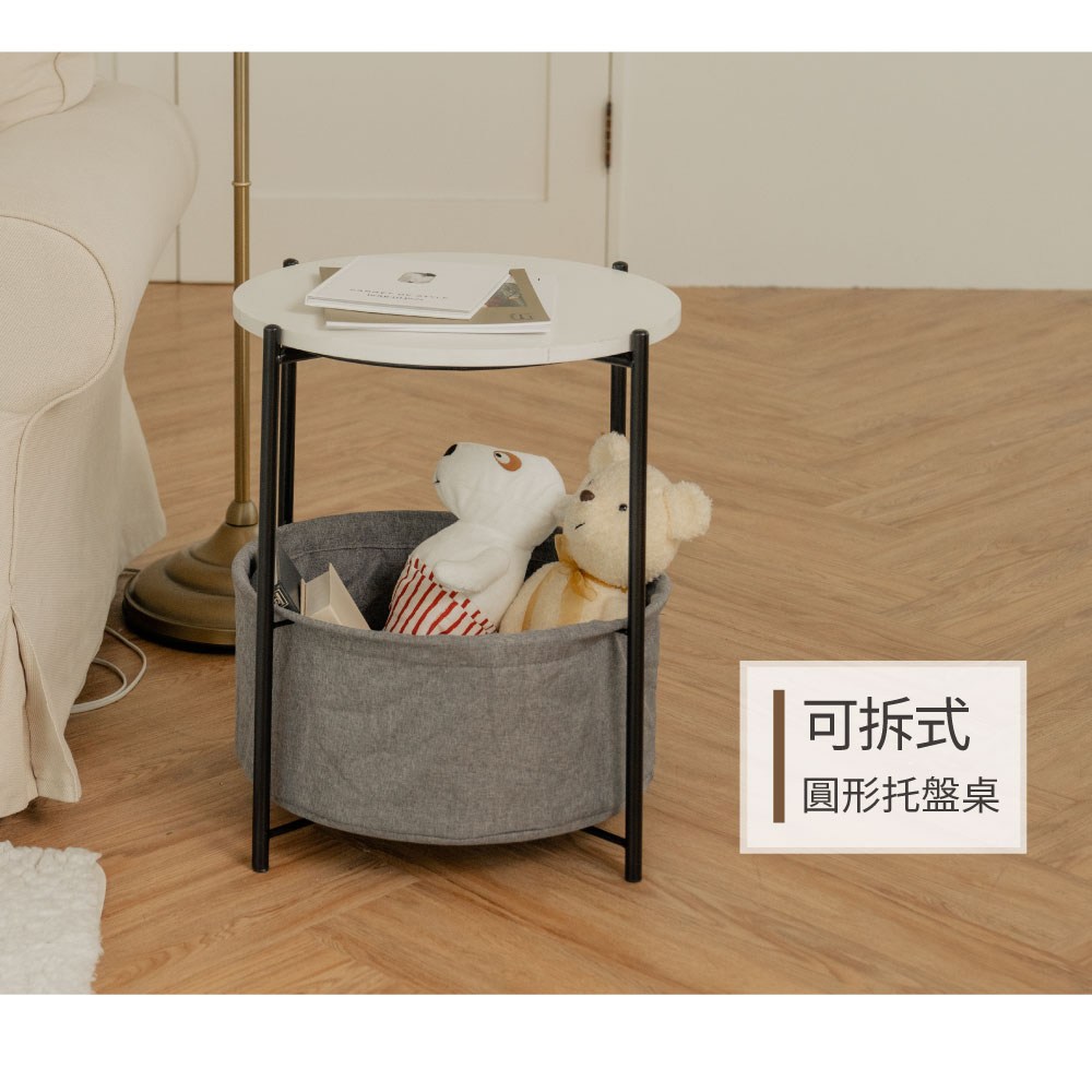 【HTGC】雙層圓邊几 布袋置物/快速組裝/光滑桌面/圓形設計(邊桌/邊几/茶几桌/置物檯/小茶几/收納台)