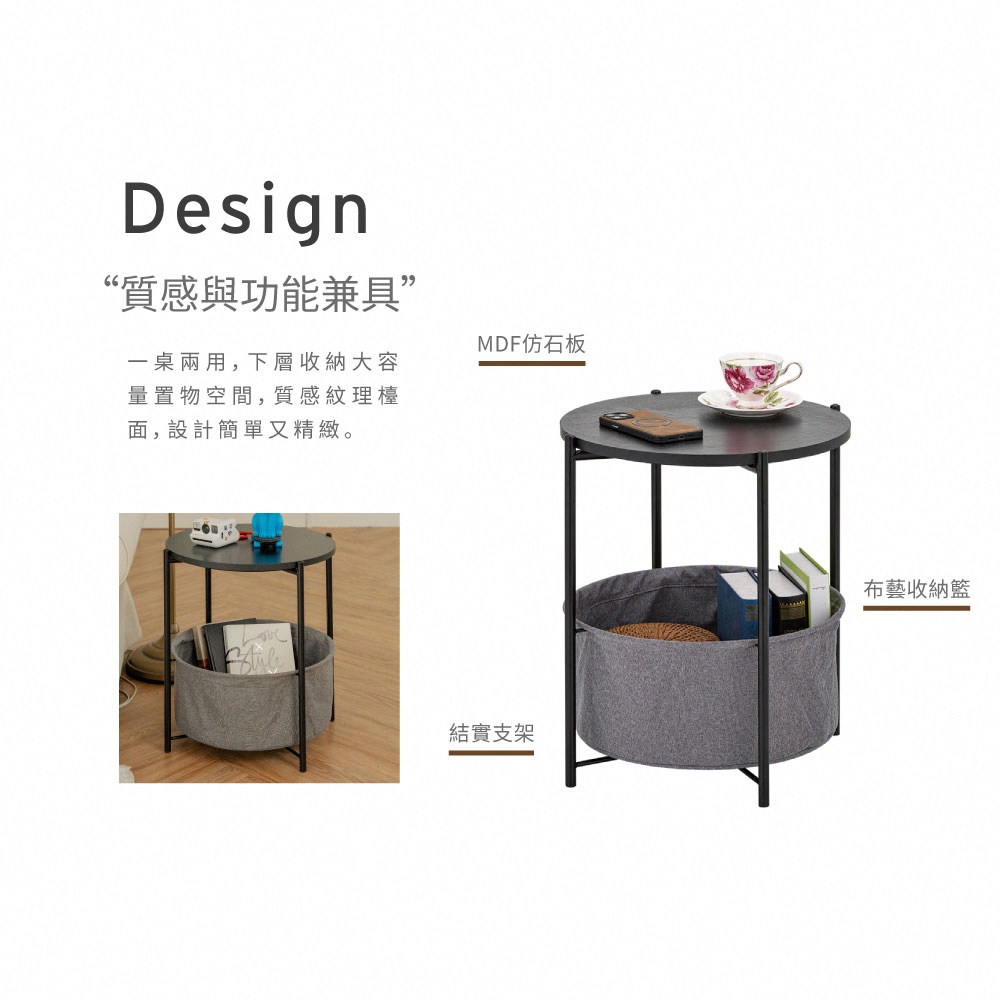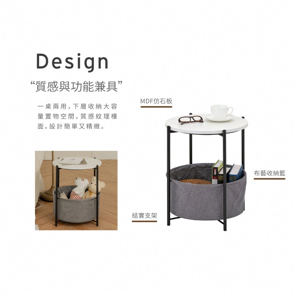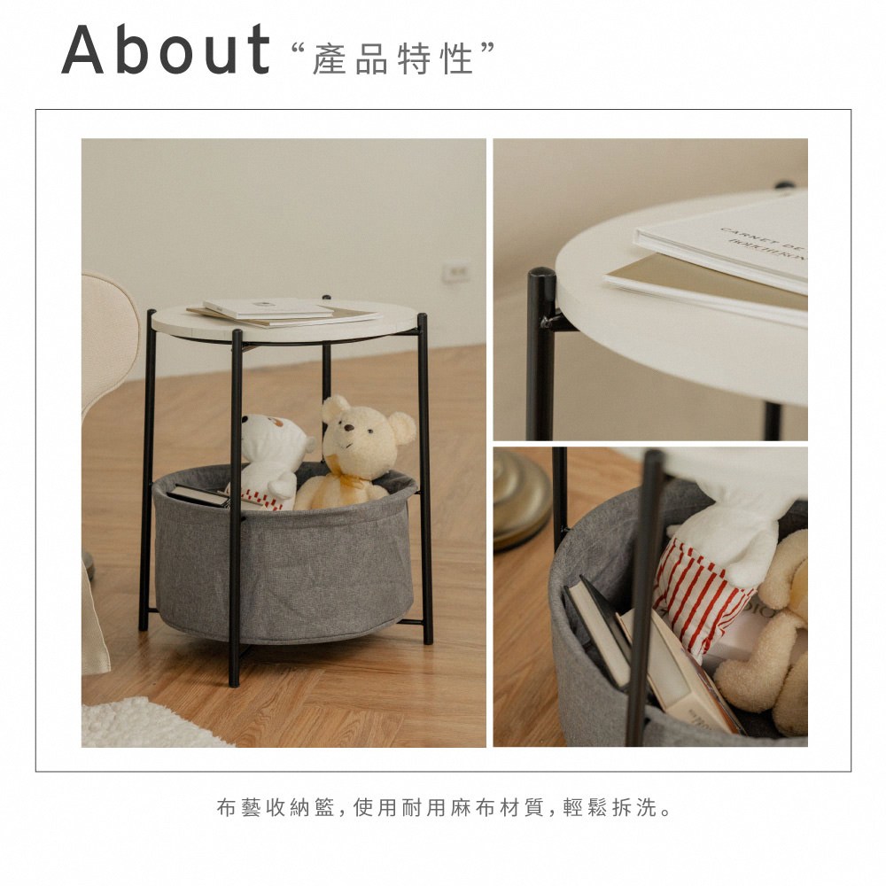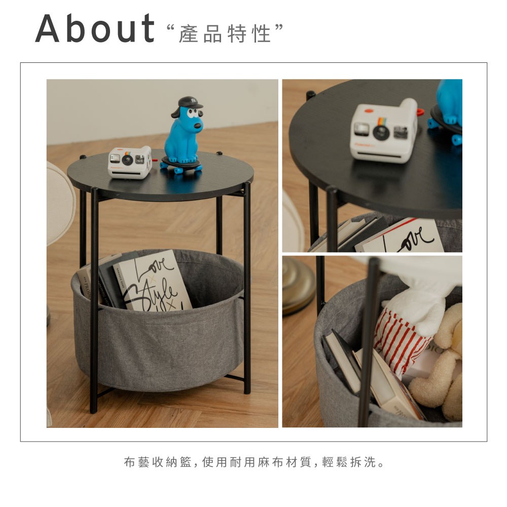 【HTGC】雙層圓邊几 布袋置物/快速組裝/光滑桌面/圓形設計(邊桌/邊几/茶几桌/置物檯/小茶几/收納台)