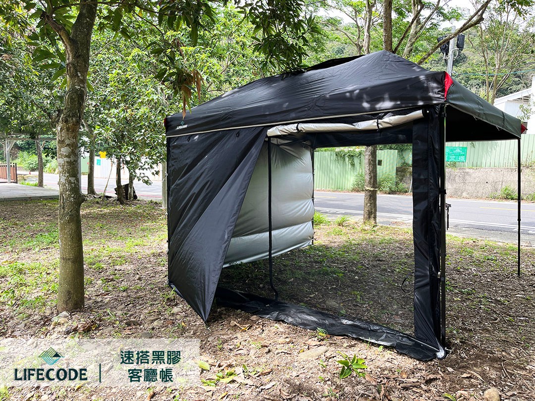 LIFECODE 最新大全配帳篷組合,將黑膠加厚客廳帳結合雙層圍布,一組搞定遮陽、防雨、防蚊、防風,無論是露營、炊事、活動攤位或防疫臨時帳棚,通通適用!