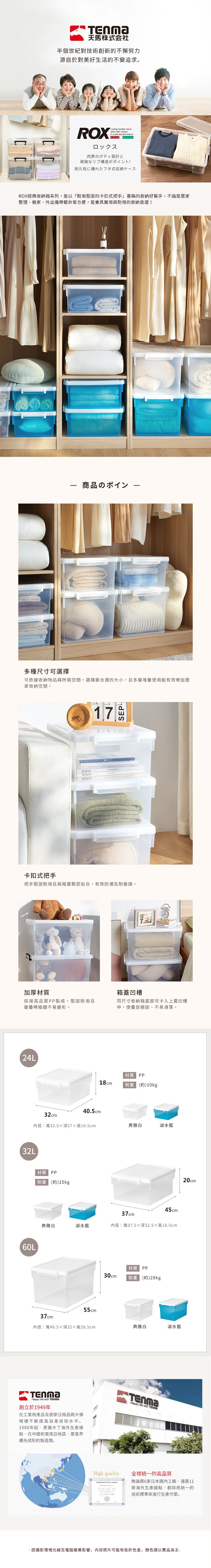 【日本天馬】ROX系列簡約風掀蓋收納箱-60L-3入-多色可選典雅白