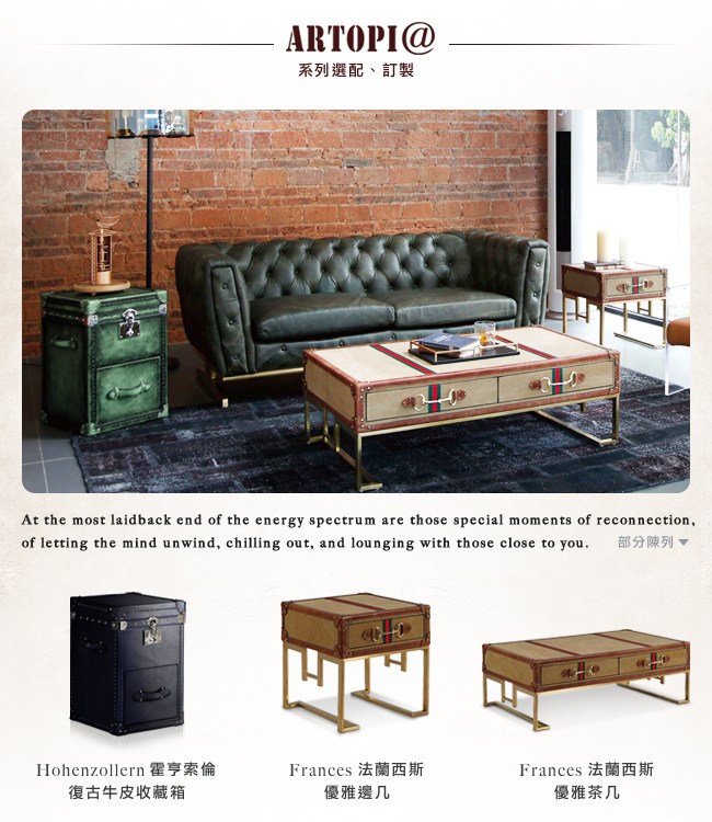 在對古董、復古傢俱的熱愛下,於 1997 年成立英國藝術傢俱品牌。結合「ART」藝術與「UTOPIA」烏托邦,宛若進入文藝復興時期,藝術的理想鄉。那是獨一無二的殿堂,感受著非同凡俗的風格。極致奢華,沈浸於貴族時代的古典氛圍之中,享受、欣賞、品味這一切的生活。每件 ARTOPI 的藝術品,採用最佳的傳統技藝,以及優良的材料製作而成。回顧百年歷史的靈感,融入現代時尚的美感,醞釀創意、重新構想,因而產生了獨特、與眾不同的收藏品,突破了傢俱設計的界線,成為了格調。