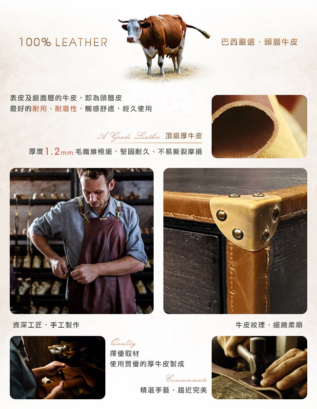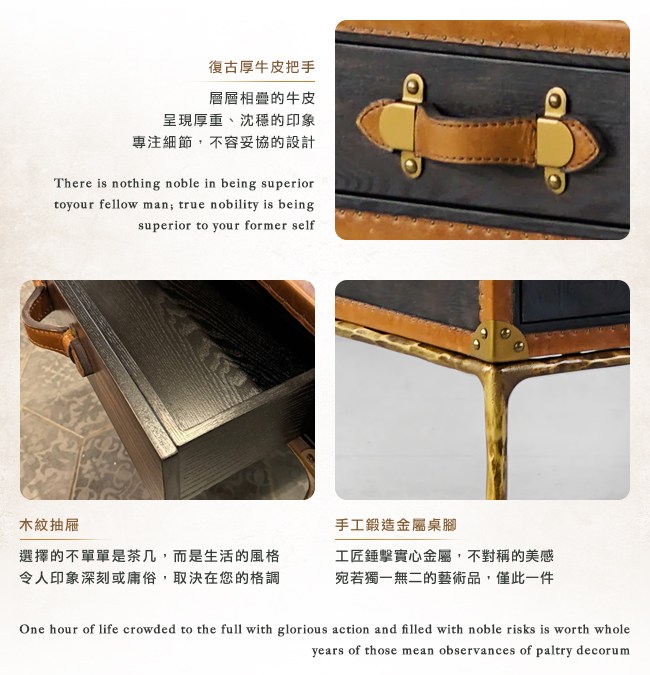 ◆ 復古厚牛皮把手、實木抽屜