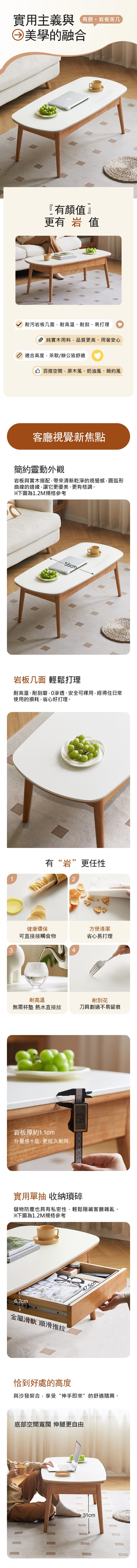 *注意:以下為情境示意圖,實際商品款式為原木日式有朋橡膠木實木原木色岩板茶几1M J20J11