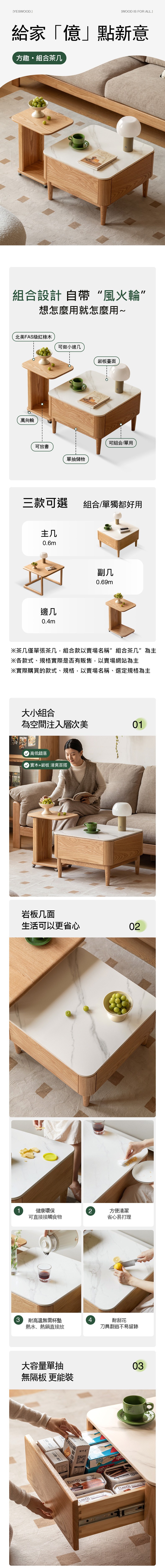 *注意:以下為情境示意圖,實際商品款式為方趣橡木實木原木色岩板組合茶几 (岩板茶几+邊几) Y28J05