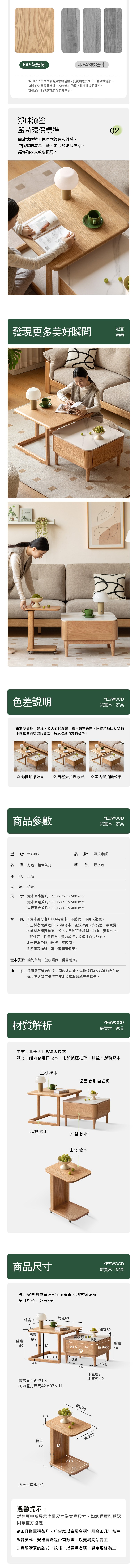源氏木語方趣橡木實木原木色岩板組合茶几 (岩板茶几+邊几) Y28J05