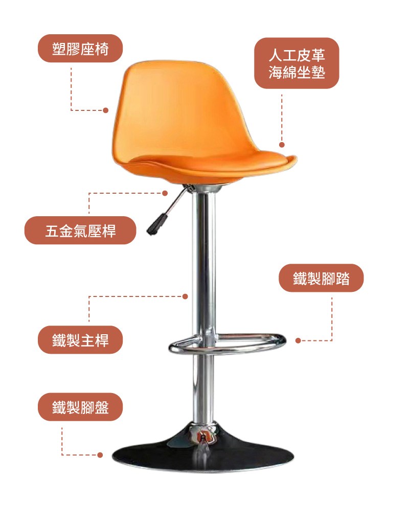 瓦特吧椅(白橘)