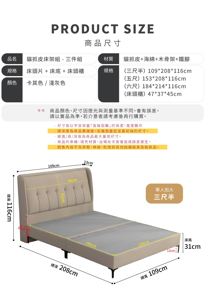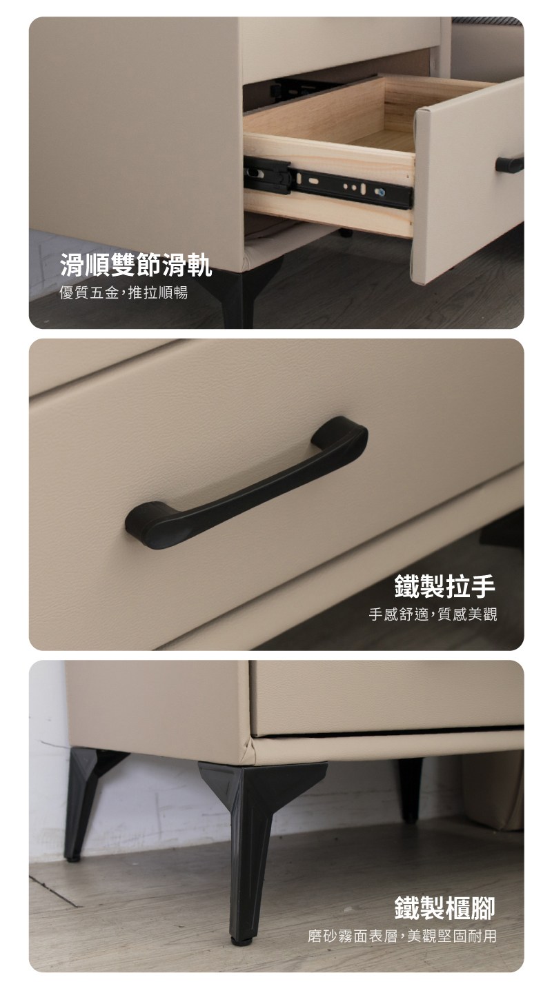 點我下載【IDEA】威尼5尺雙人貓抓皮床架/房間3件組(床頭+床底+床頭櫃)淺灰色