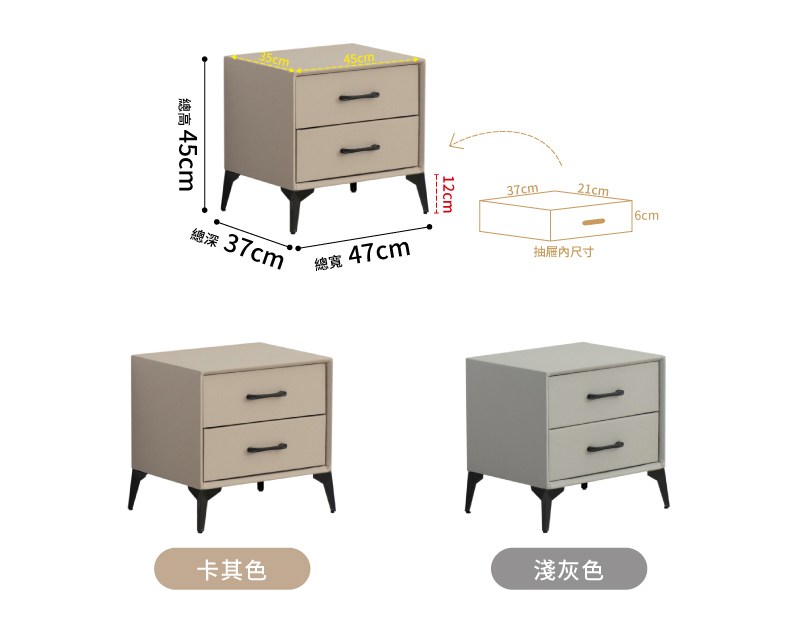 林氏木業簡約仿皮磨砂腳床頭櫃 D002-煙灰色 (H014332216)